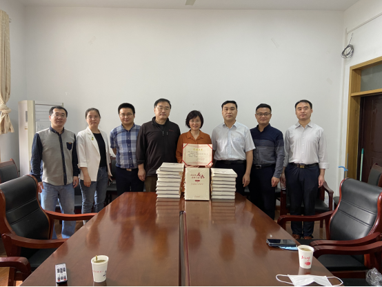 毛锐代表伟德国际1949始于英国接受捐赠图书,并为省委老干部局柴召芹处长颁发捐赠证书。